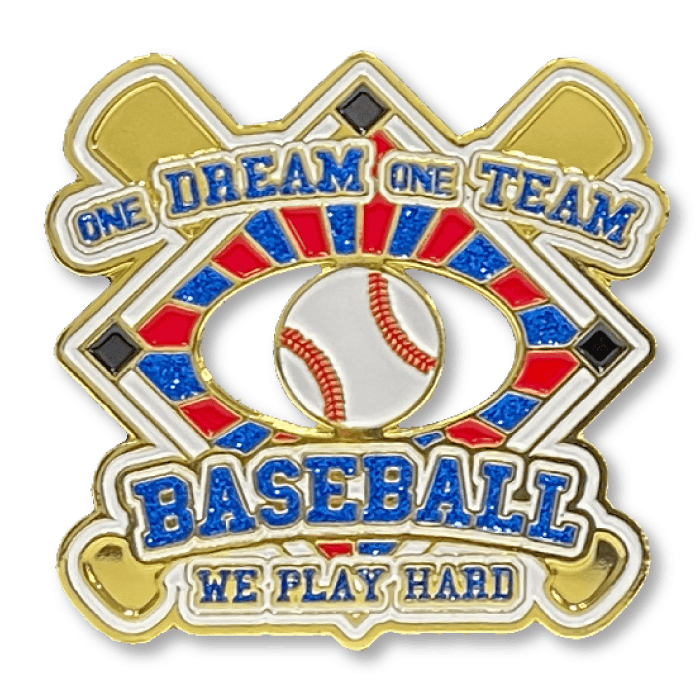 A Dangler is a popular addition to a trading pin to display the year of the tournament. Other popular dangler options are baseballs, baseball gloves, a softball, a flag, and much more! The dangler itself is a separate trading pin that requires its own design, and is just as much fun to create as it is to display on your team's pin.